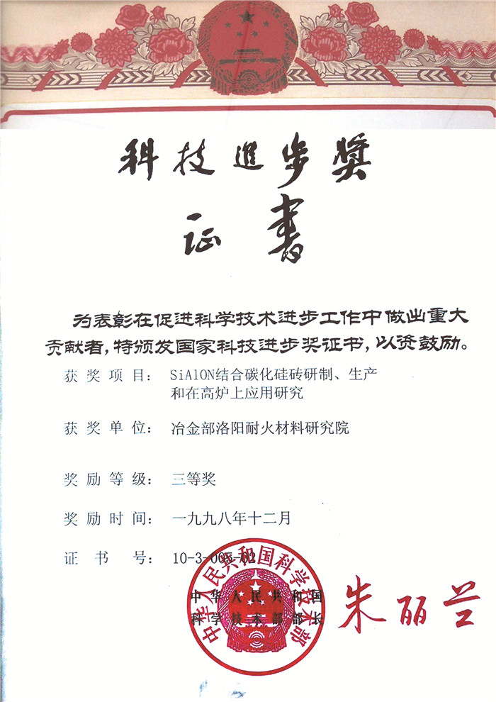 科技進步獎證書